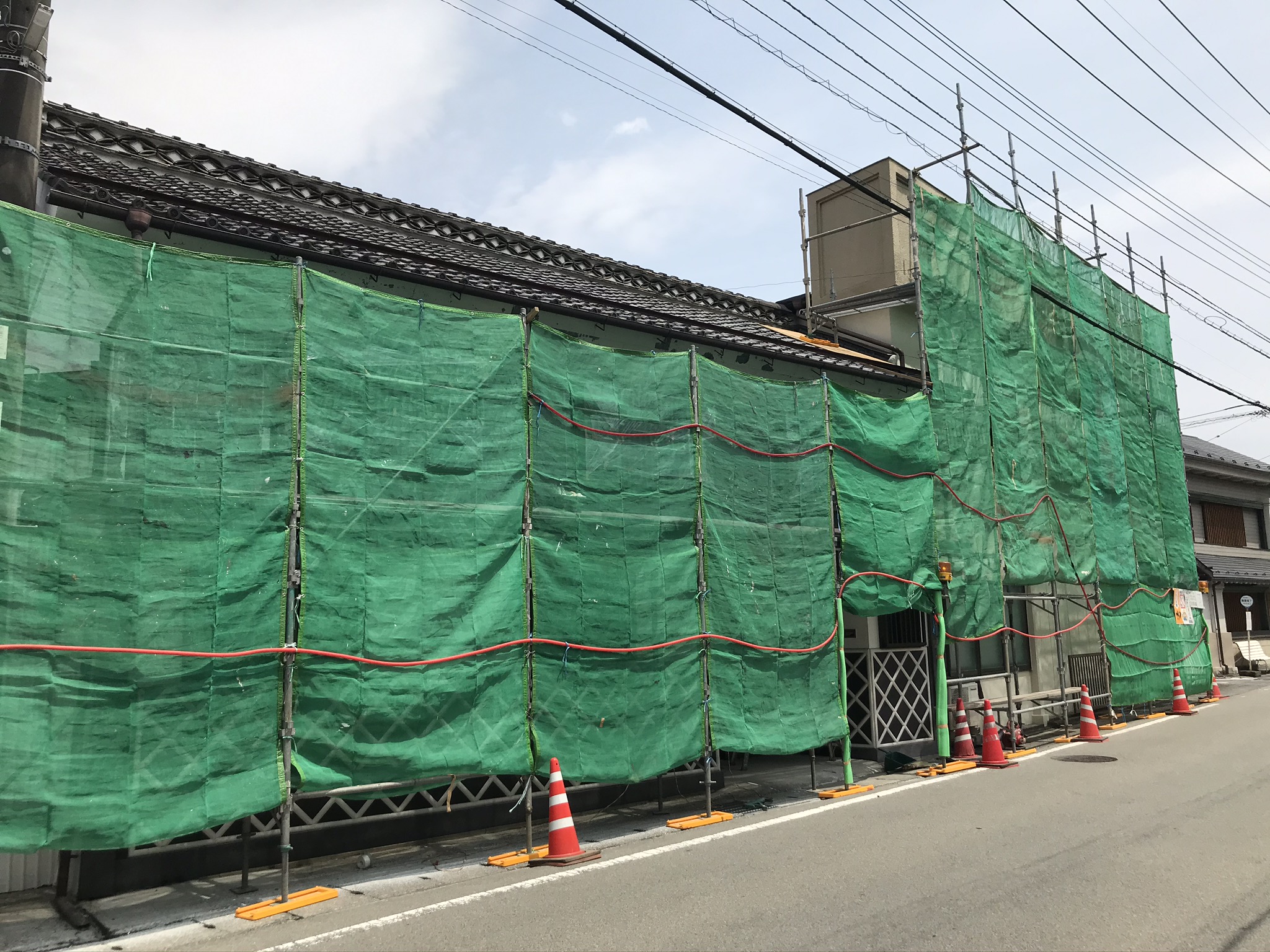 実はこちらの物件、県道沿いにあります。そのため工事足場の一部が道路にかかってしまいます????